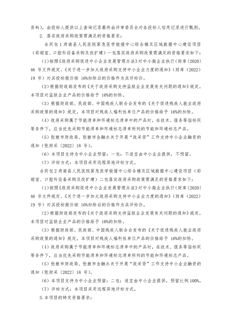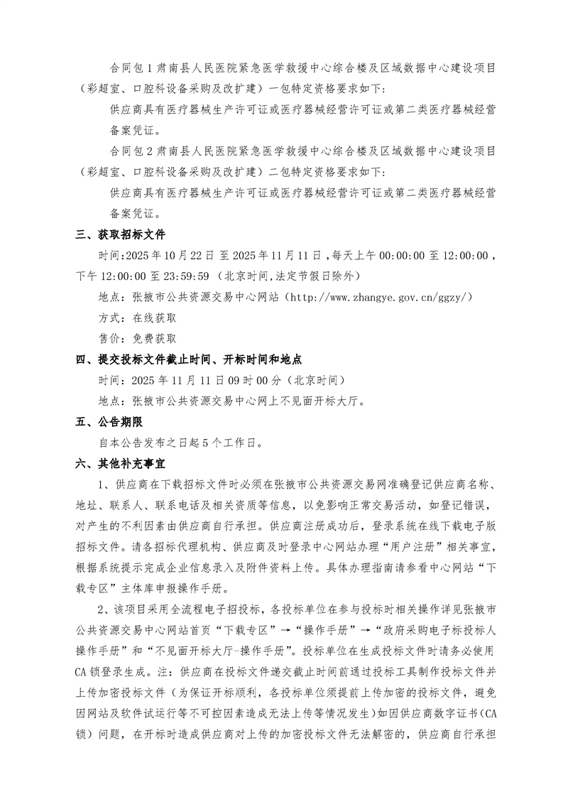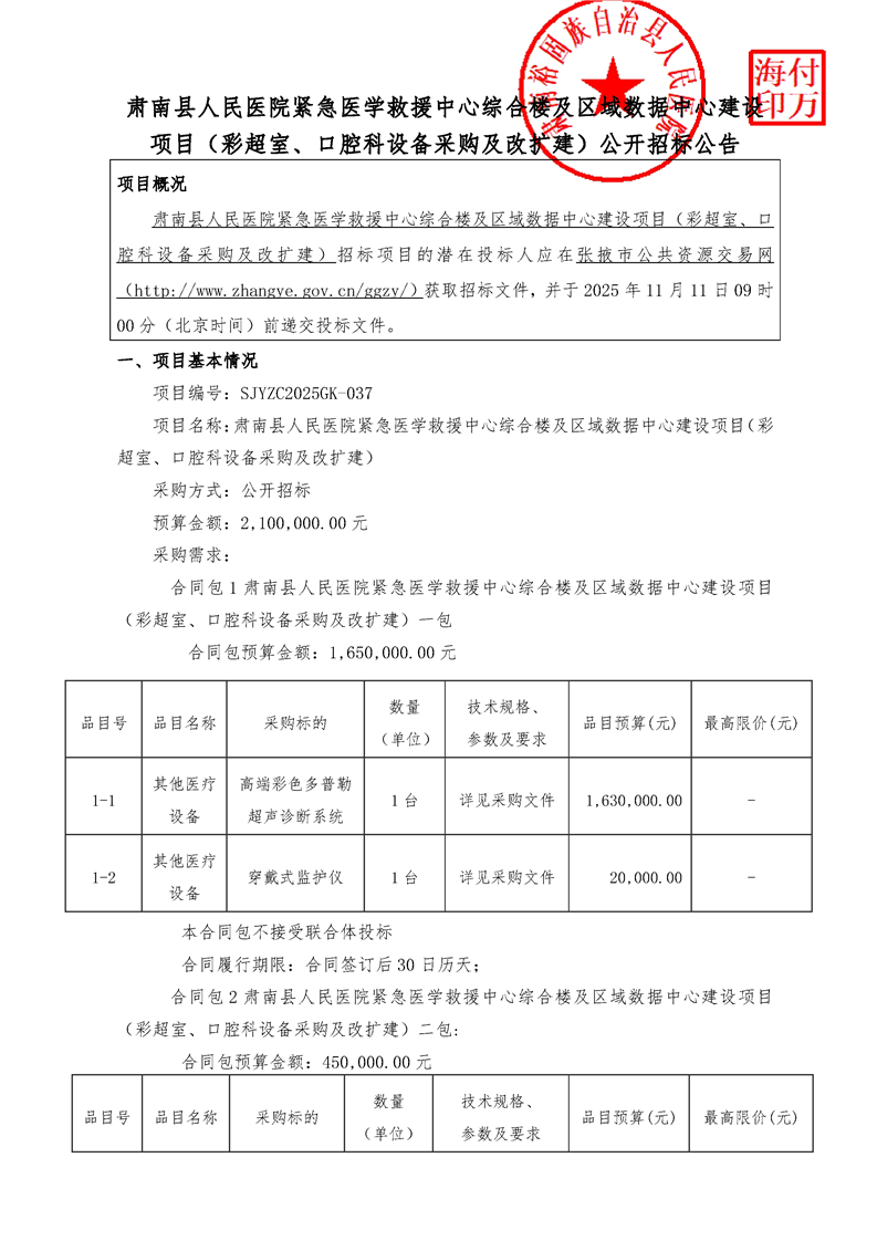 > 肃南县人民医院紧急医学救援中心综合楼及区域数据中心建设项目(彩超室、口腔科设备采购及改扩建)公开招标