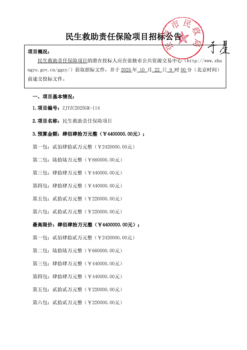 民生救助责任保险项目招标公告