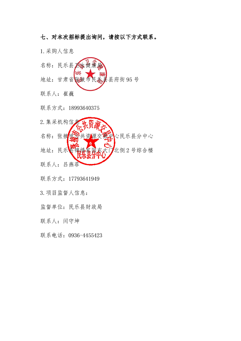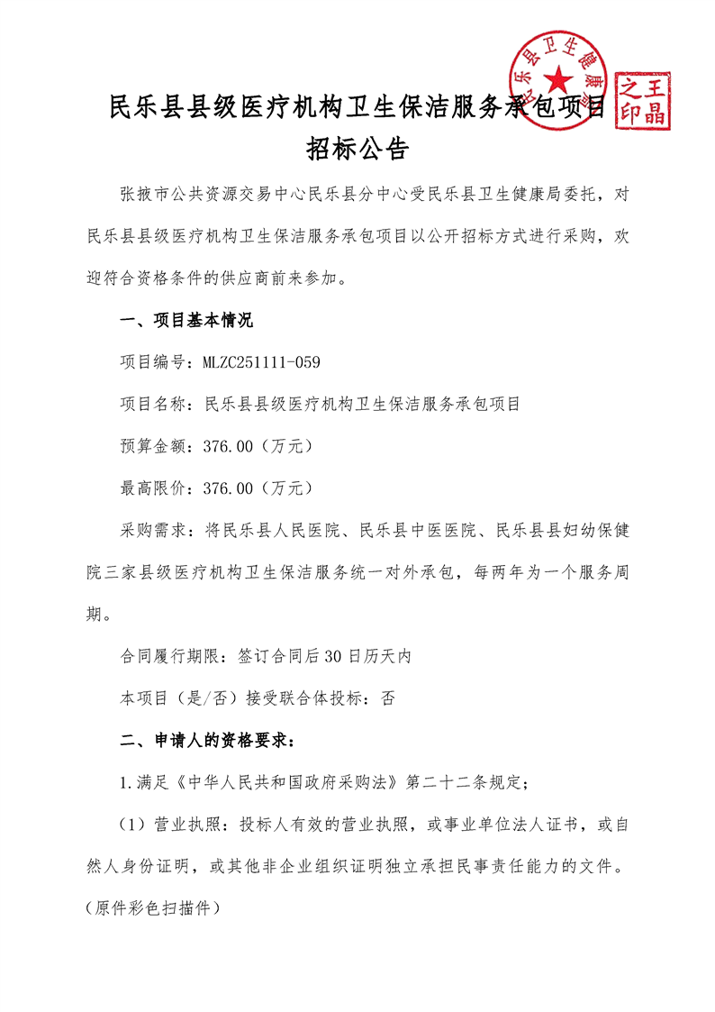 民乐县县级医疗机构卫生保洁服务承包项目公开招标公告