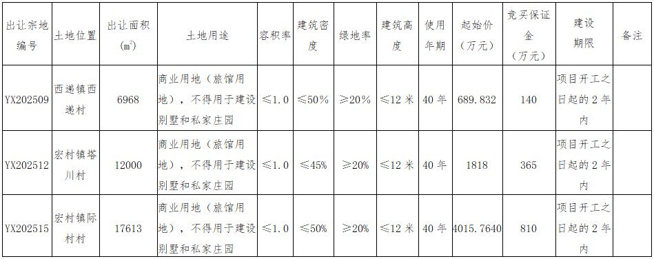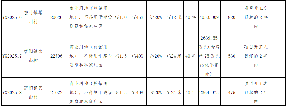 经黟县人民政府批准,黟县自然资源和规划局委托黄山市公共资源交易中心以挂牌方式出让以下 6宗土地的国有建设用地使用权。现将有关事项公告如下: