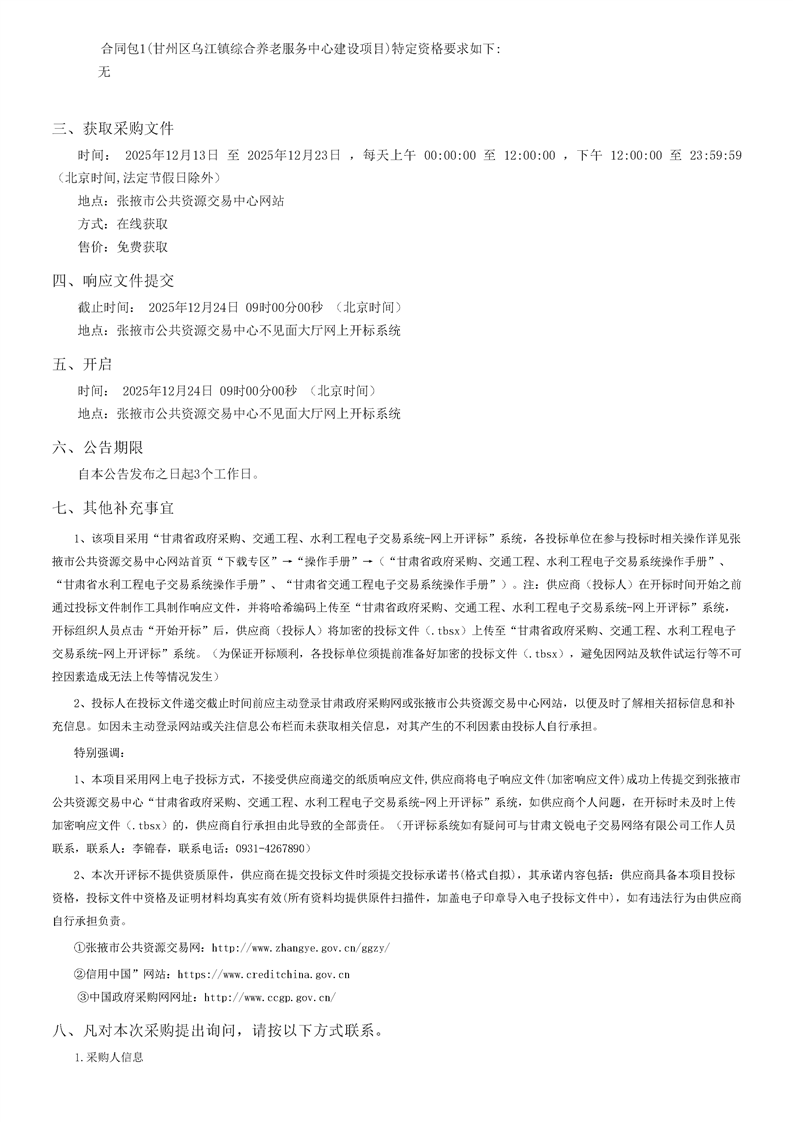 > 甘州区乌江镇综合养老服务中心建设项目竞争性磋商公告
