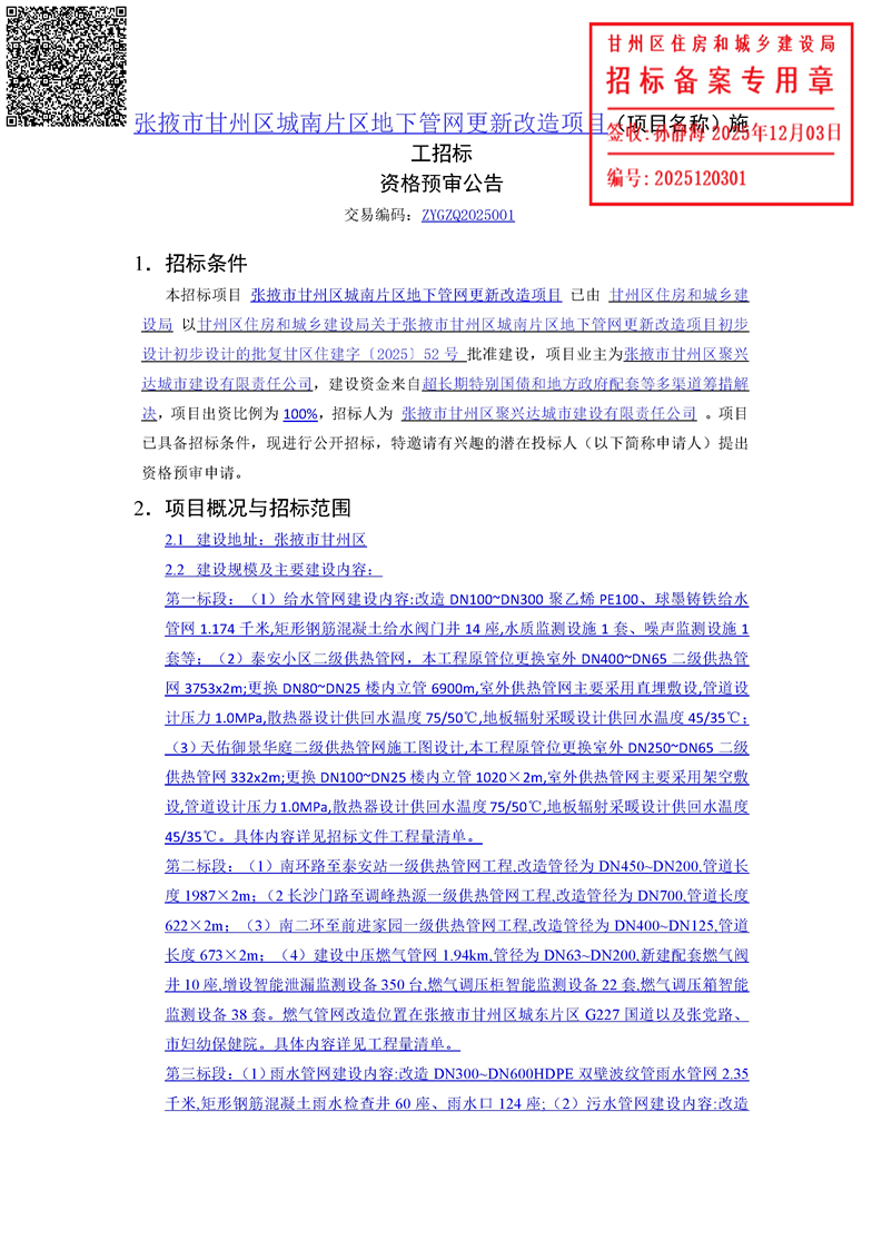 > 张掖市甘州区城南片区地下管网更新改造项目